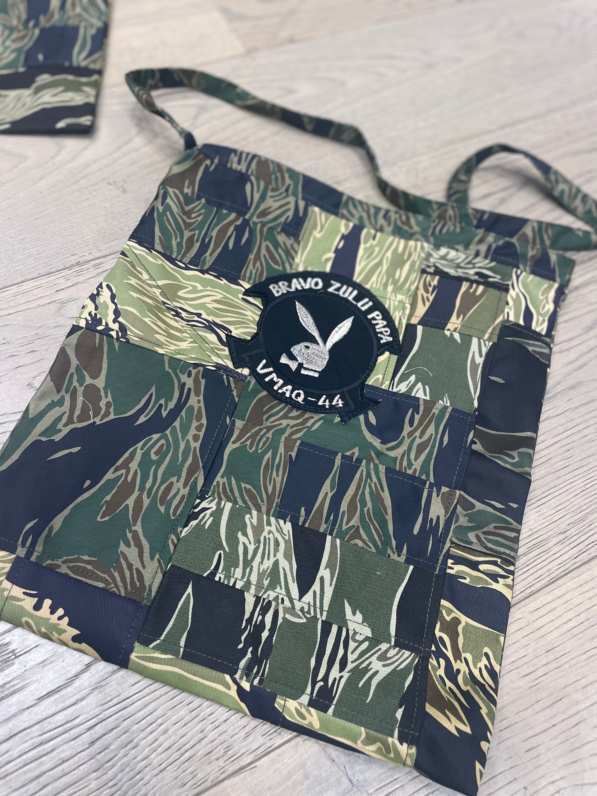 Awesome new crazy pattern tote pieced together by the good people at East Asia Supply Co. in Hong Kong. Finished with a hand machined Bravo Zulu Papa patch sewn by Mamasan in Saigon.